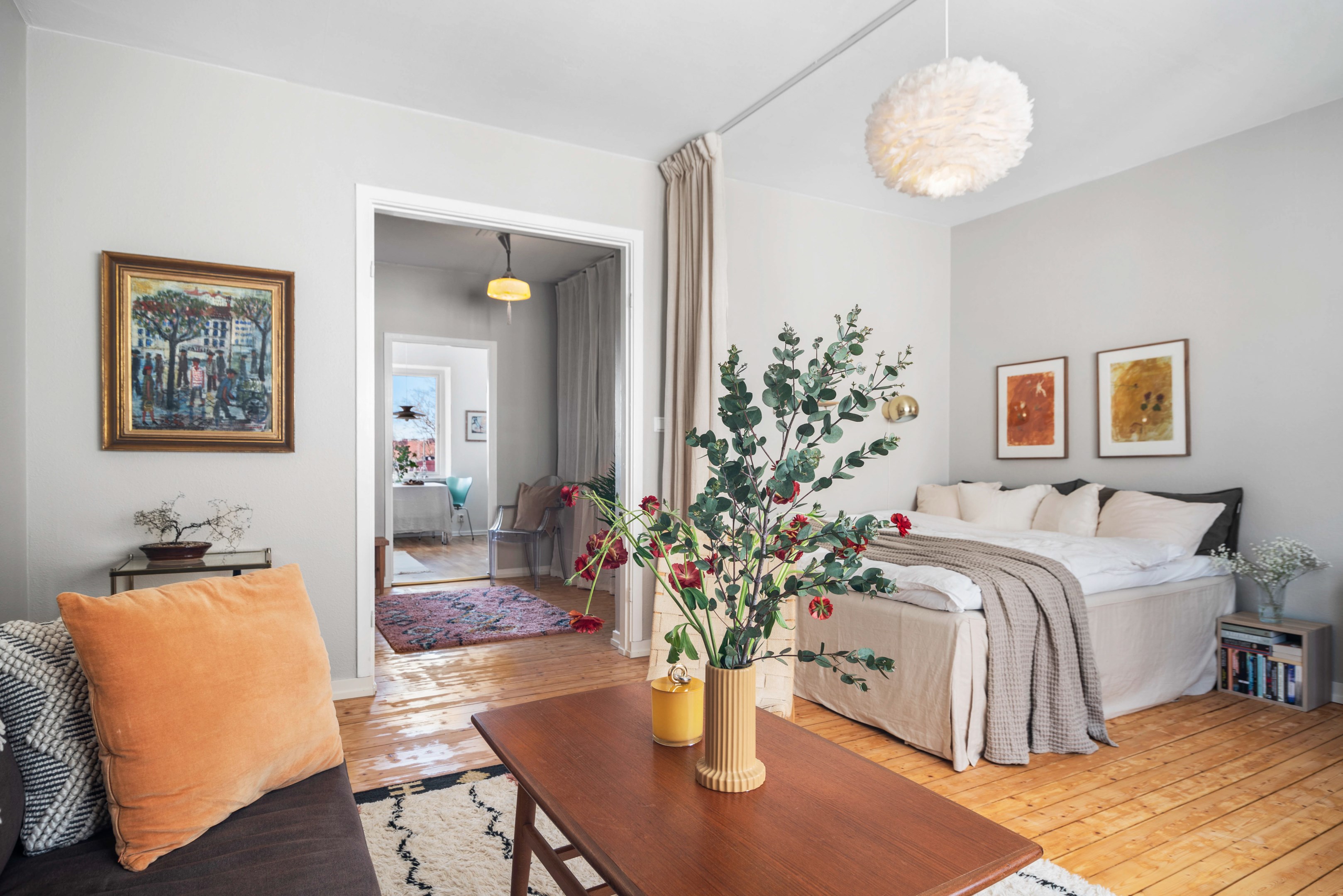 Här finns plats både för säng och soffgrupp